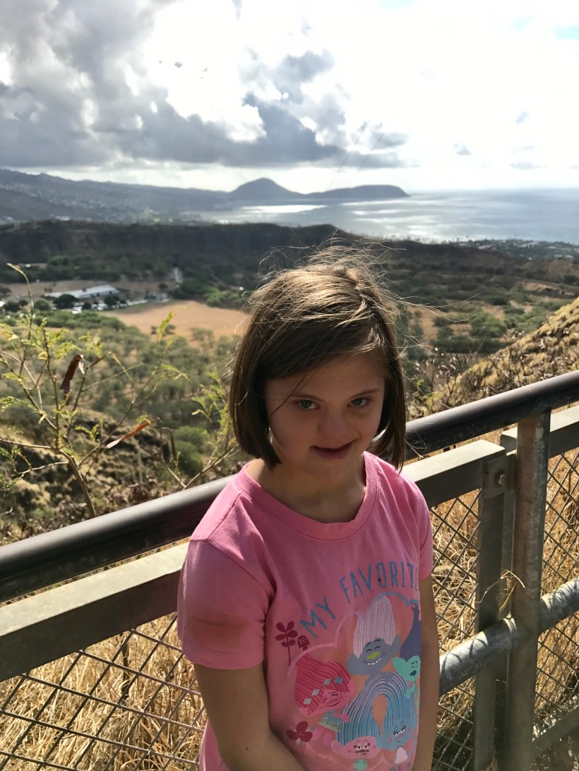 This morning, Day 1, Mike was up and out of the condo by 5 am. He has been waiting to explore all that Pearl Harbor has to offer since I don’t know when. Meanwhile, knowing that Casey would never be in any possible shape or mood to get to the entrance of Pearl Harbor two hours prior to opening, wait in line for the ferry to see the memorial, then explore the museum and other parts of the exhibit ad nauseum, (actually none of us were up for that!) I had hoped to see Diamond Head National Park and hike up to its observation point. I knew it would take some coaxing to get my girl up there but I truly thought she could do it. We had even discussed it with one of her doctors who knew her AND Diamond Head very well, having grown up here herself. Let me just say… it is tougher than it looks! She did make it up to the top and I am so very very proud of her for getting there. It took a lot for her to accomplish that and I know she is proud of herself for it, now that she has recovered from the toll it took on her, both physically and mentally. She gets tired easily, gets hot easily and gets motion sick easily. Not usually a good combo for travelling. But, she is a tough little Bird and doesn’t usually complain. That said, it still takes quite a bit of extra planning and patience to make the most of vacations like this one. I am used to giving her specific instructions and details in preparation of a new activity or change in plans. I am not used to slowing down, taking lots of breaks and giving LOTs of encouragement, especially all at the same time. Lucky for me, Casey made sure I took away a few lessons from Diamond Head.