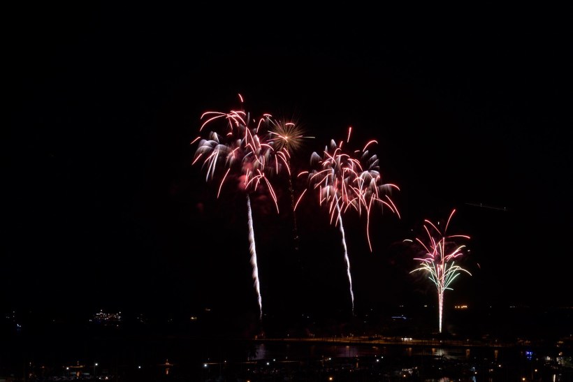 Just like we suspected, the Fourth of July in Waikiki is CRaY-CrAy-CrAZy!! Cars in every parking spot, tents set up on every possible patch of grass or sand, and people milling about with their families passing the time until it’s dark enough for the fireworks to start. I was SO glad we got a condo with a balcony facing the fireworks so that we didn’t have to mess with all that. In fact, we ate a meal of mostly leftovers last night along with a few items we made Dan grab at the local ABC store (a general store of sorts located on just about every block in Honolulu.) Mike had his tripod all set up with his camera and recording equipment so we not only got some great pics but also a video and audio recording too. Our condo could not have been in a more prime location to witness the awesome fireworks that we saw. (although Casey was a bit less impressed. She was sound asleep in bed by the time the finale came to a halt. Yet another reason I was so grateful that we got to stay in one spot.)