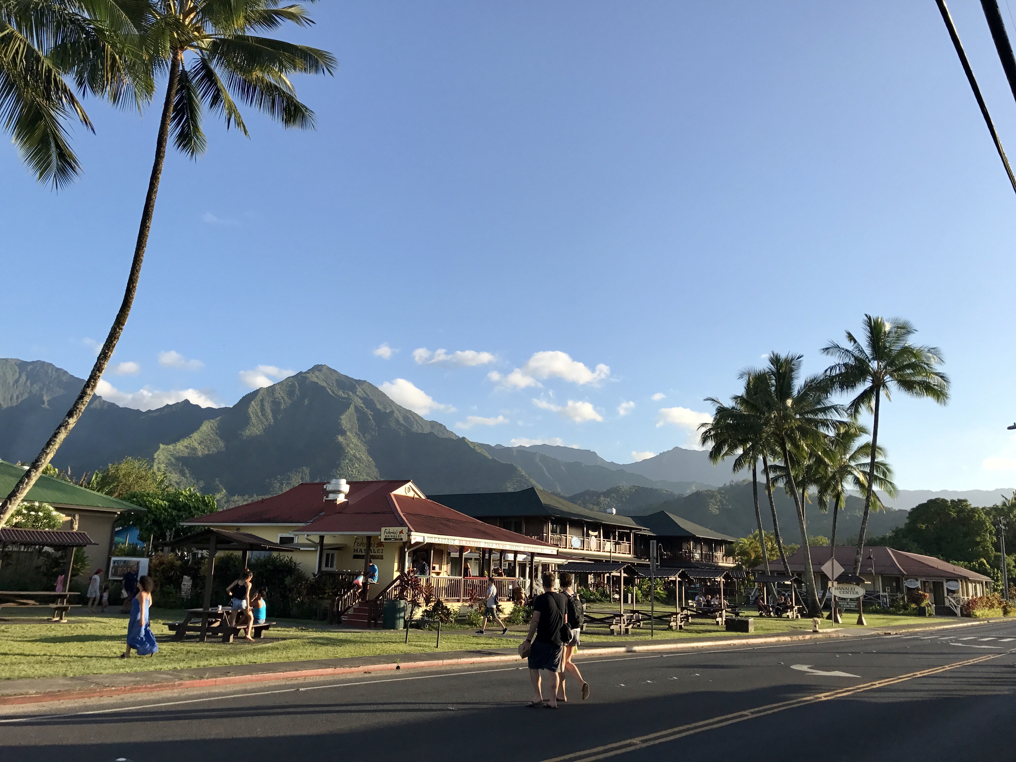 On to Kauai; we are excited to be here. We are staying in beautiful Hanalei Bay and our view is gorgeous. We have already seen more chickens in the last few hours than I have seen in a lifetime and found a quaint little shopping area not far from our condo with tons of restaurants.