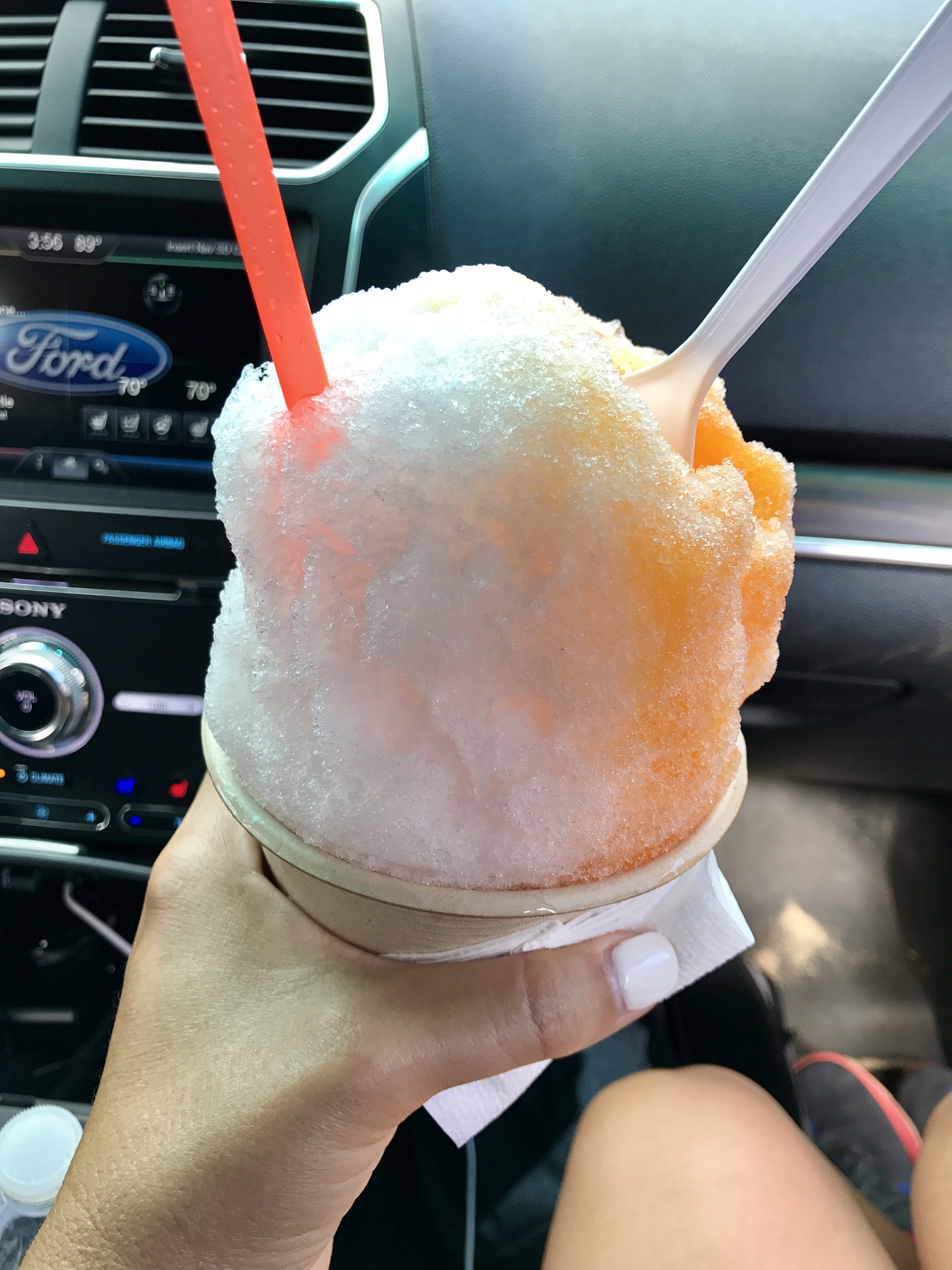 The way down made me get a little taste of what Casey deals with regularly. I think I was reading the guide book too much and got a little car sick. Stopping at Jo-Jo's for the best shave ice on the island made me feel a lot better!:)