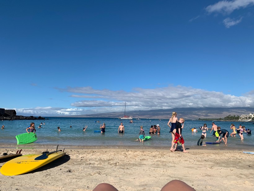 We woke up Saturday planning to hit the road for our special adventure ASAP but the beach called us. We took a family swim at 8 am. I’m now convinced every day should start with a family swim in the Pacific. Dan and Mike took Casey out snorkeling and they saw an eagle ray (think Mr. Ray in Finding Nemo)… super rare to see. Casey swam 100 yards in all by herself and we were all very proud of her. I stayed closer to shore of course but still tried to enjoy the ocean water on my skin.