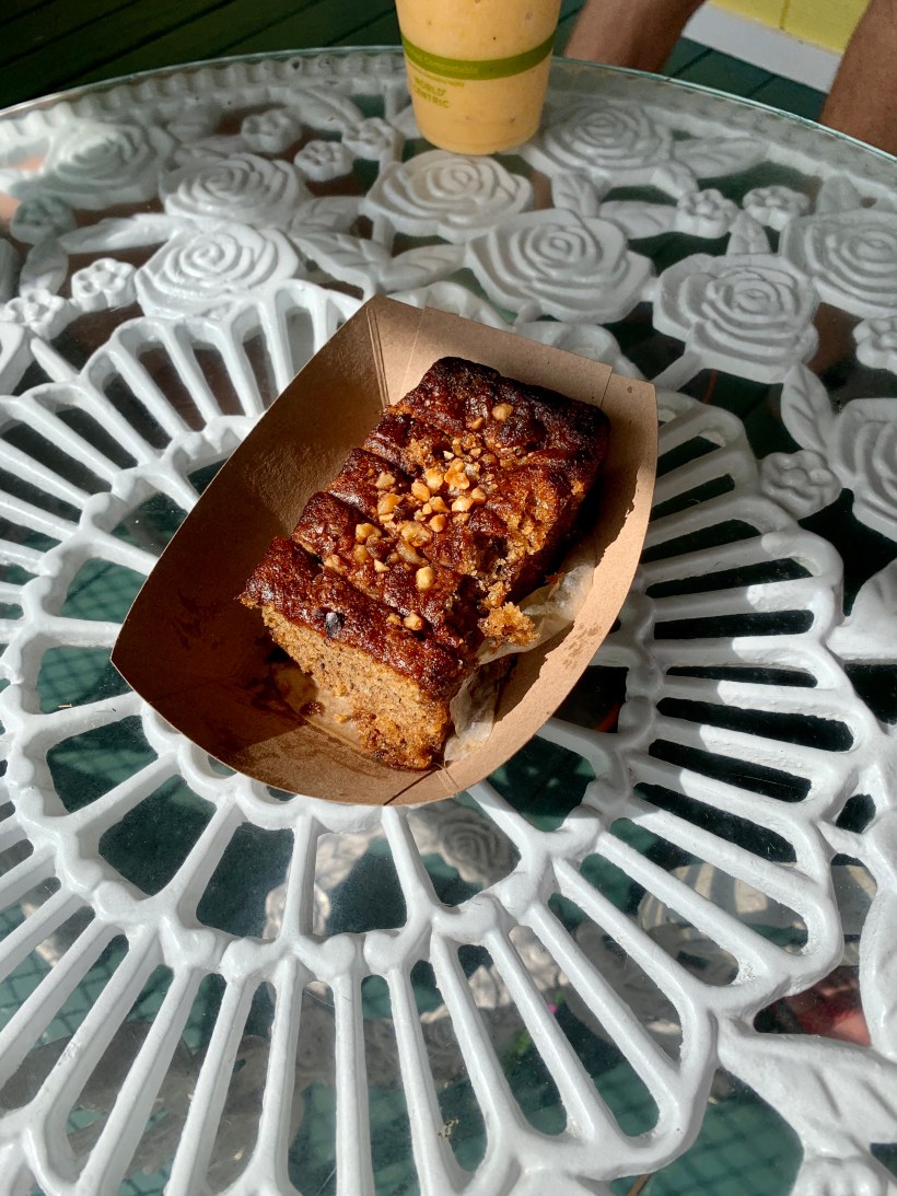 Sunday morning, we woke to rain, of course. I mean, it is the jungle. But it was quite relaxing to enjoy our coffee on the screened in porch surrounded by green in every direction. We then meandered over to the center of the village, where they host their own Farmer’s Market every week. Our scores at this market far outweighed what we missed the day prior. Casey and I had “Coqui-in-a-holes” which were delicious sprouted grain bread slices with an egg fried right in the middle of the toast. She basically ate hers and half of mine, washing it down with some delicious lilikoi juice. We also gathered a few souvenirs and some of the freshest produce you have ever seen.