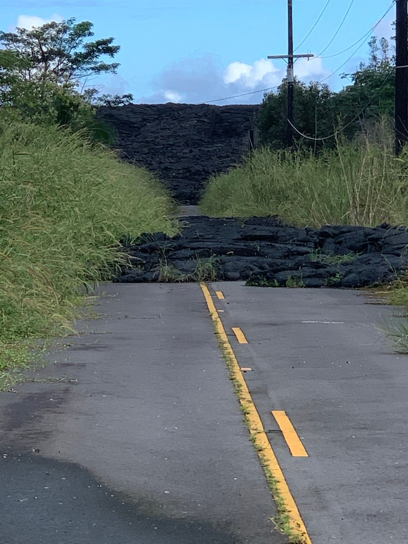Four Corners was the intersection about 10 miles further south where you turned west to Vacationland, a small community of homes in Kapoho that surrounded the Wai O’pae Tide Pools. The 2018 eruption of Kīlauea covered it all. The access roads, the neighborhood, the gorgeous tide pools and all the marine life in it… gone. Last month, the state was able to complete the paving of a new road to the intersection. From there, a two mile hike takes you to a brand new gorgeous black sand beach. We did not do that hike, unfortunately. But we did walk around on the brittle and still warm lava that surrounded the road, all of us in disbelief that this was once basically a lush jungle dotted with little homes on stilts. We saw mangled electric poles half buried in the ropes of hardened lava. We passed a couple homes cut off from civilization until recently and most likely in disrepair since I am guessing a lot of the materials in the home melted from the heat of the surrounding lava. After spending a memorable week out here in a gorgeous home overlooking the now-gone tide pools, this was a surreal experience for Mike and me. It saddened both of us to know what once was a beautiful, lush jungle is now a stark, desolate lava field. (Click on this…Day 23 – Tide Pools to see what this area looked like before the eruption.)I recently discovered the time-lapse feature on my iPhone so I thought this was a perfect time to try it out. This is the new road out to Four Corners.