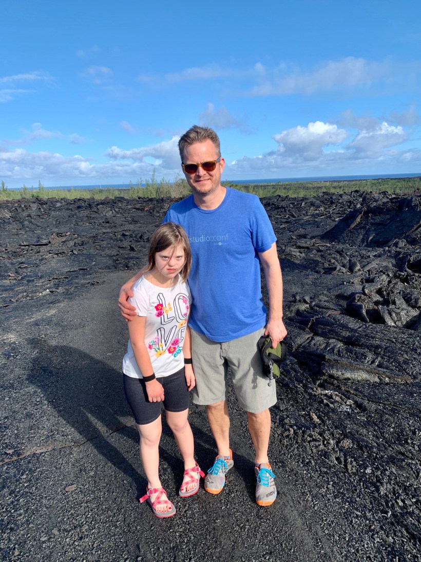 So much more happened on this little adventure. In fact, some of the best parts of the last two days were the interactions with the wonderful locals and Hawaiians. One of the sweetest moments of our trip so far was when Casey received a Hawaiian blessing from a local Hilo man who had come out to Four Corners to gaze at the lava. Mike had been chatting with him about his experience here during the eruption, and when this sweet man saw Casey step off the lava and come over to her daddy, he just melted. He said he had to get a hug from her. He asked her politely and after she said yes he proceeded to place his forehead on hers and explain how Hawaiians greet each other in this way. It was such a sweet and special moment. She seemed to enjoy all the love and attention, which has not been that uncommon during our trips to Hawaii. For some reason, we have found that many Hawaiians seem to gravitate to Casey. Whether it’s on the lava, In the airport, or in town, this girl has been shown extra love by the Hawaiian people. We don’t quite know if it’s because they don’t see too many people here with Down Syndrome or if it’s just the culture of Hawaiians to show extra love and respect to family members “on the margins” but no matter the reason, it is wonderful to witness their kindness and love to our girl since we think she is pretty special too.