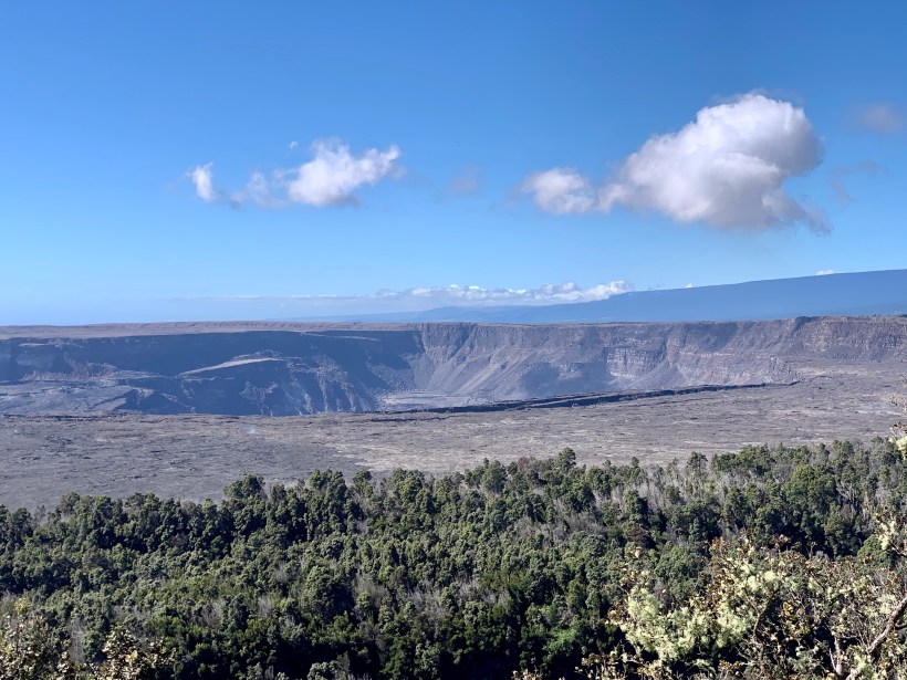 Back at the Volcano National Park, we checked out the Visitor’s Center first only to learn that Casey was ready for yet another meal. Knowing that she was already not into this part of the trip we decided to wait the 20 minutes before lunch was served at Volcano House so that Casey could be well fueled for the rest of the day. Anxious to see more of the volcano I was not thrilled about this detour, until I learned that our waitress was Stacy Welch. I recognized her from the documentary Pele’s Path. Fissure 8, the largest fissure of the 2018 eruption is, literally, in her back yard. We got to talk with her a bit before it got busy about all that she dealt with during the eruption and since then. She still struggles with PTSD and said she will probably lose her house in the near term as it has some long term damage from the gases and heat. She has only been back in the house for less than a year.