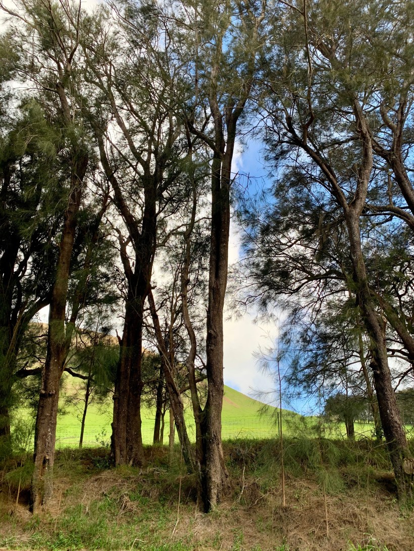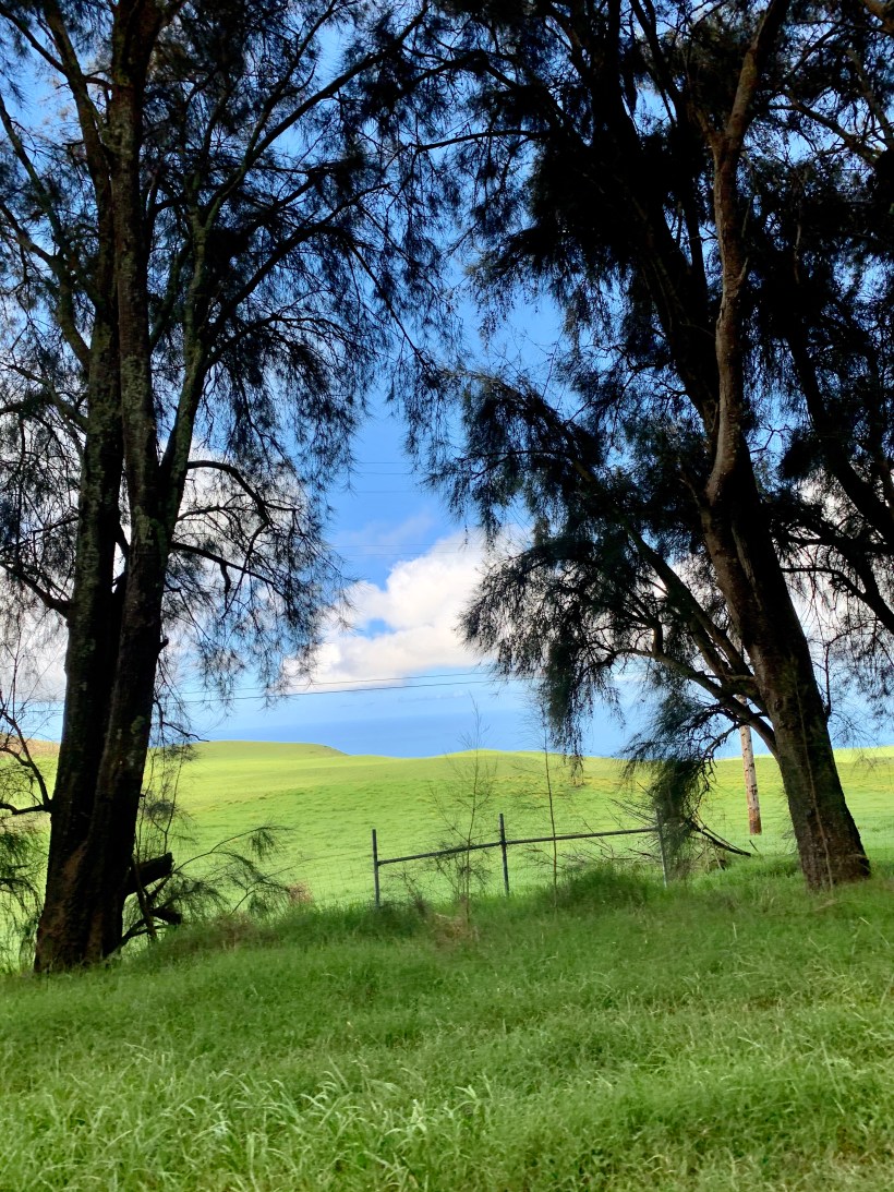 We followed Kohala Mountain Road back from Hawi down into Waimea and stopped a few times, trying to listen for the wind whistling through the tall straight pines that line the road. On this occasion, the whistling sound was barely audible; sun poked through the branches and there wasn’t a cloud in sight. So rare for this area, but so beautiful. We managed to grab a few shots at a scenic stop that are actually some of my favorites of the trip.