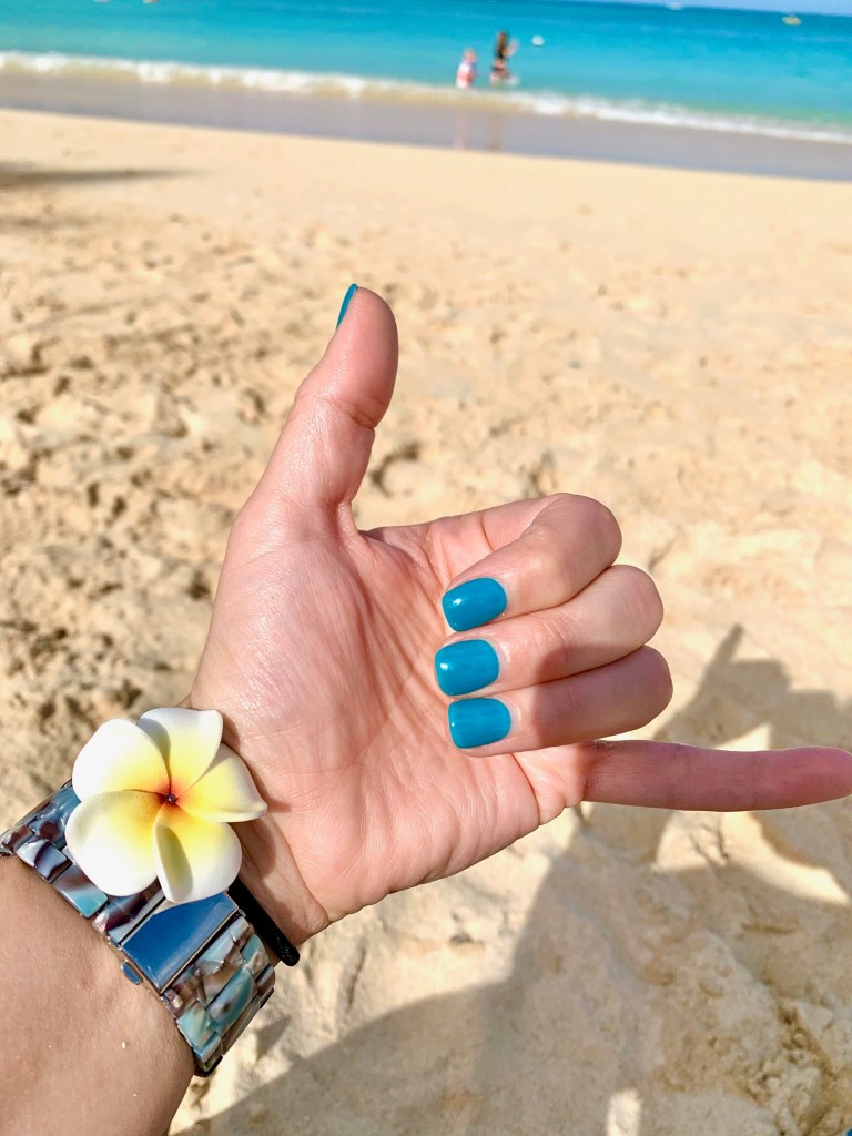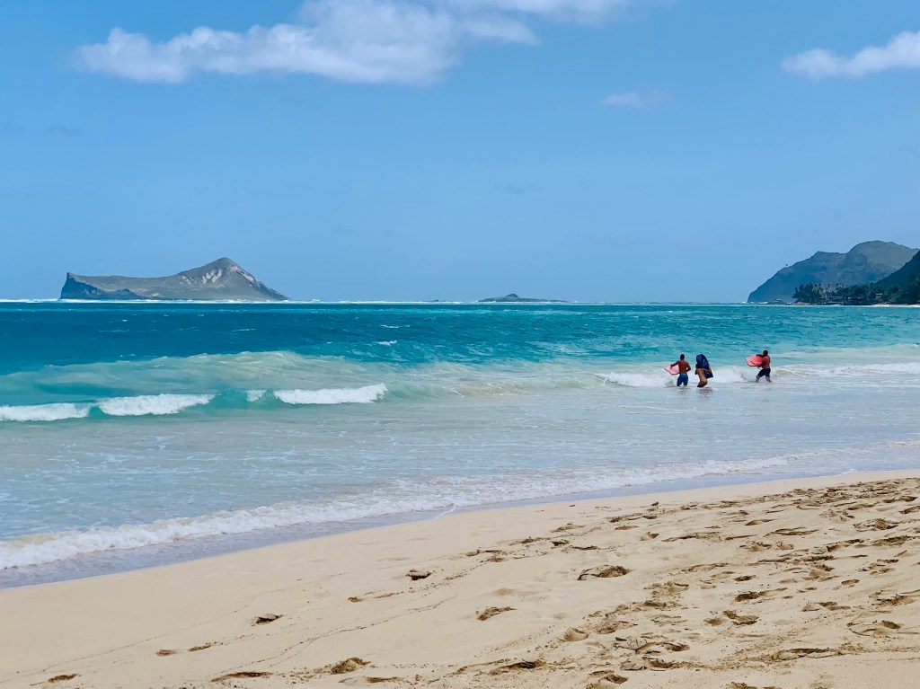 By about 1:30 we were hungry (I could have stayed longer but felt like Dan had patiently indulged his mother enough) so we headed toward Kailua town because for some reason, California Pizza Kitchen sounded really good to us right then. A quick 10 minute drive was all it took to get back into this adorable town for some yummy food before we once again, sought out a parking spot near Lanikai Beach for the last time this trip. The beach was quite full today as it seems that Hawaii tourism is most definitely picking back up! (I also think Waikiki had some rain but it was wonderfully only partly cloudy on this east side beach!) Among many of my beach activities like reading, sudoku, taking walks along the beach and dips into the water, a new favorite is laying flat on my back and watching the clouds pass by. I decided to count it as my form of meditation. I am sure I have done this before but never with as much enjoyment or focus as I did this trip. It certainly helped me relax and feel calm which was one of my ‘goals’ for this week.