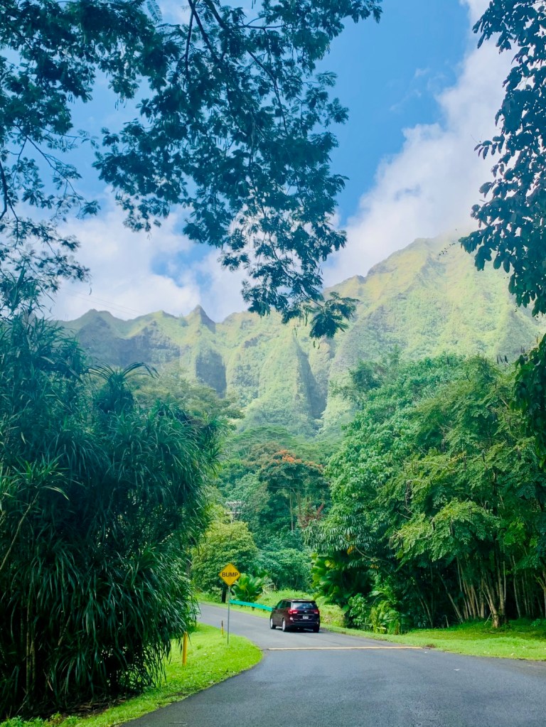 I have always wanted to go here. The Ho’omaluhia Botanical Gardens in Kaneohe on the eastern side of the island was most definitely worth the wait. As you can guess, it is a favorite among travel bloggers and Instagrammers due to its breathtaking backgrop of the Koolau Mountain Range. The Botanical Gardens were originally built in 1982 by the U.S. Army of Corps Engineers as a way to reduce flooding in the adorable town of Kaneohe. Rightfully named, “a peaceful refuge,” these 400 acres feature plantings from major tropical regions around the world, like the Philippines, Malaysia, India and Sri Lanka, Africa, and of course, Hawaii. The park is free to the public and while anyone can drive through the park and stop to view the plantings at each of the different regions, they only have one main rule… no taking photos ON the main road, which they clarified meant no stopping on the road for pics and no pics of people walking in the middle of the road. At first, I thought that the workers we passed and those that mentioned this rule were a bit over the top and almost downright rude… I mean, come on, it’s just a road and what really is the big deal if someone wants to grab an Insta-worthy shot for their travel blog. But then, as we wove our way around the park, following the rules and the signs for parking and driving that are posted everywhere, I started to understand why they were so unfriendly about this.
