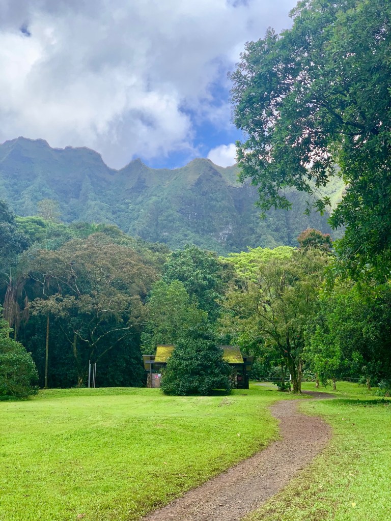 I don’t know how many times I said to Danny, “I would most definitely come here all the time if I lived in Hawaii!” In fact, I would even consider volunteering. (That is, as long as I didn’t have to annoy the Instagrammers with reminders about the rules. Way too much conflict for me in a place that is supposed to offer peaceful tranquility.) And it truly was so peaceful and tranquil walking on the winding paths with labelled flora from various regions right at your fingertips. I especially loved climbing to the top of a small overlook that opened up to 360 degree views of the Koolau Mountain range to the North and West, the town of Kaneohe down below and then the Pacific Ocean off in the distance toward the East. It’s definitely one of my new favorite places on the island.