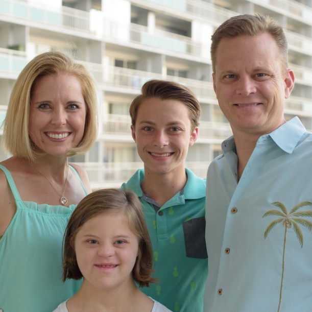 Day 6 Family Photo on our lanai. While the background is so perfect it looks fake, I can’t stop laughing at the four of us. “Someone” had had enough of picture taking for one day.